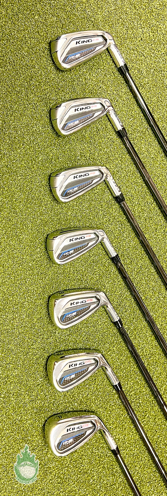 Up for sale is a Used RH Cobra King F9 One Length Irons 4-PW $-Taper 120g Stiff Steel Golf Set (7 Club Set)